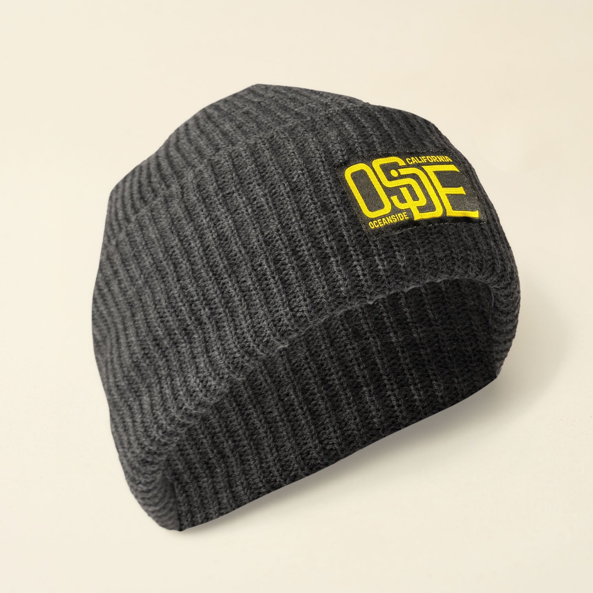 Soft Gray Beanie with Woven Patch